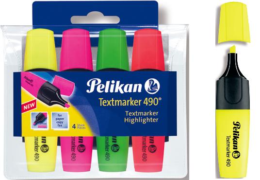 Textmarker 490-Pelikan / LeuchtstiftEtui 4 Stück 490, farbig sortiert gelb,pink,grün,orange