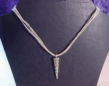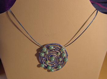 2 reihige Drahtkette in blau / grün mit Anhänger.