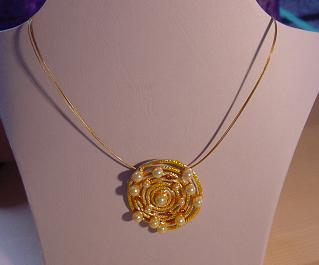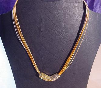 4 reihige Drahtkette in gelb mit Anhänger.