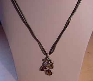 2 reihige Kordelkette in grün / braun mit Anhänger.