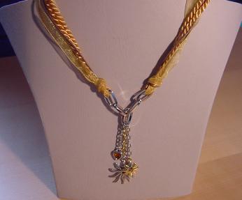 5 reihige Kordelkette in gelb mit Anhänger.