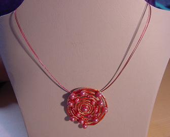 4 reihige Drahtkette in rosa mit Anhänger.