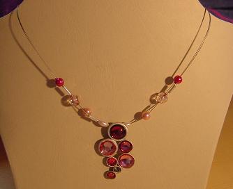 2 reihige Drahtkette in rosa mit Anhänger.