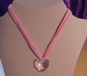 3 reihiges rosa Samtband mit Anhänger.